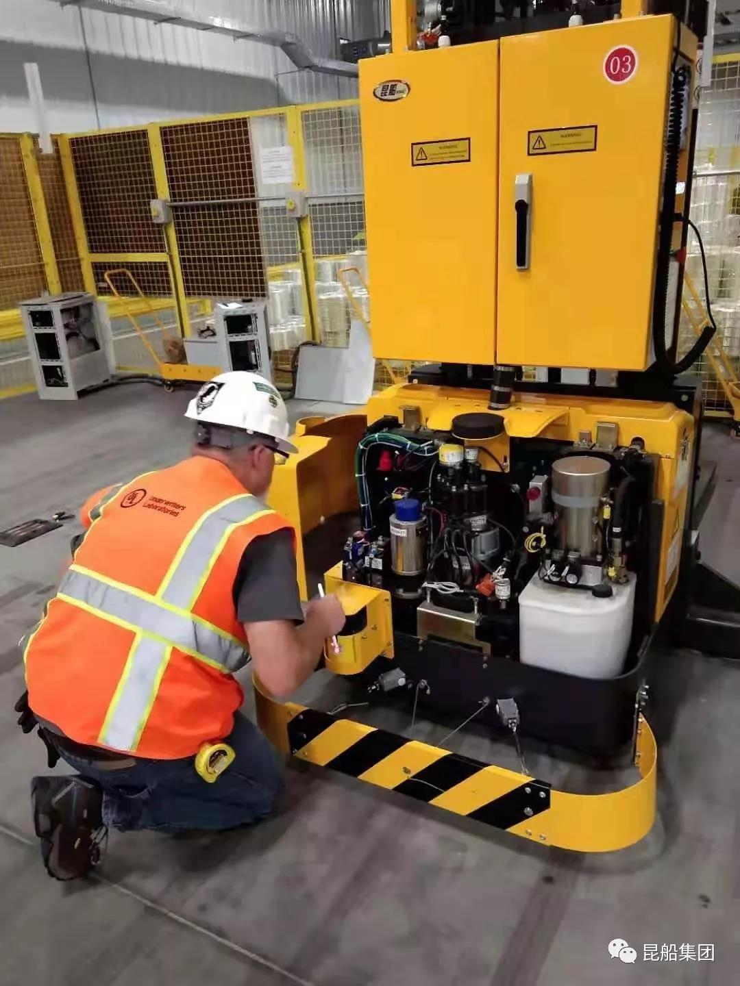 8月29日,昆船智能某出口项目通过美国UL认证。认证工程师TIM对昆船AGV赞不绝口,在进行了严格的测试后,非常爽快地在昆船AGV车身上贴上了UL认证铭牌。