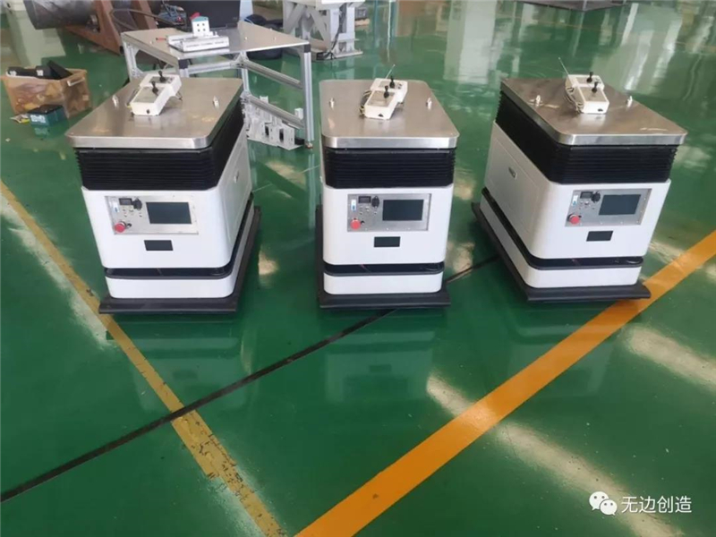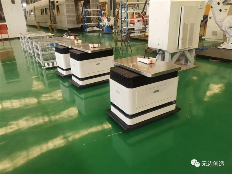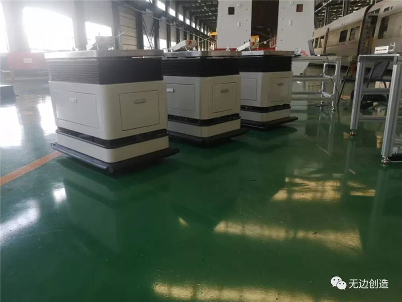 这是使用在制鞋生产线中的一台AGV,主要用于皮鞋和针织鞋生产。