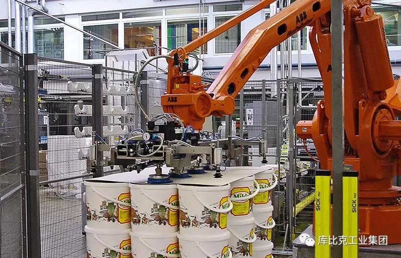 码垛机器人是将包装货物,整齐的、自动的码(或拆)在托盘上的机器人。它的出现在实际应用中大大地提高生产力、降低工人的工作强度,在个别恶劣的工作环境下还对工人的人身安全起到有效保障的作用。是机械与计算机程序有机结合的产物。为现代生产提供了更高的生产效率。