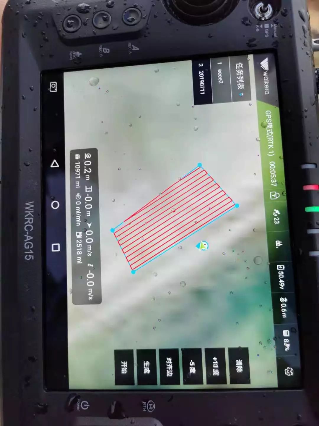 7月,无人机万里行走进广州市华科尔科技股份有限公司(简称:华科尔)受到公司高层热情欢迎,双方就油电混合系统在行业中的应用进行深入交流。随后,华科尔工作人员带领我网人员冒着中雨在田埂间进行15L油电混合植保机飞行演示,整个流程从航线规划到自主作业喷洒一气呵成。