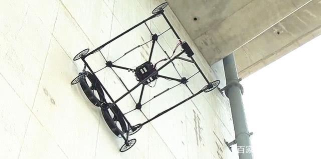 这样可以使得它更加牢固地抓住墙壁,它的轮子上装有更加强有力的吸盘,就像壁虎的脚一样,可以自由游走在墙壁上,而旋翼转动产生的负压,它还可以依靠自身的摄像头检查公路、桥梁的利器。