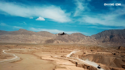 当亿航AAV路过荒无人烟的戈壁,毫无违和感。