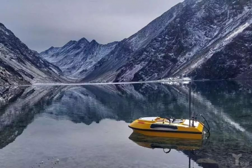 ■搭载单波束声呐的云洲SL20无人船在智利进行测绘作业