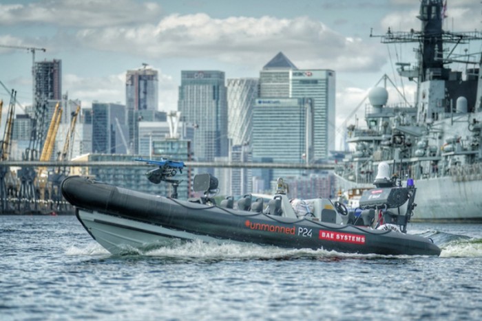 据外媒New Atlas报道,BAE系统公司计划本周在伦敦码头区演示一种可以与英国皇家海军战舰的战斗系统完全整合的无人水面舰艇(USV)。作为2019年英国国际防务展(DSEI 2019)国际防务和安全事件的一部分,其无人Pacific 24 Rigid Inflatable Boat (P24 RIB) 将连接到26型护卫舰HMS Argyl的作战管理和传感器系统,以展示这种无人水面舰艇如何扩展该护卫舰的能力。