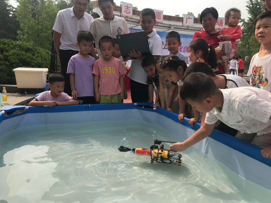 9月12日,全国科普日前夕,在合肥市安居苑东村的广场上,各色机器人迎来了社区居民以及小朋友的兴趣,当日西园街道安居苑社区开展“放眼科技,放飞未来”科普活动,多款机器人展示。而一款在水下“游来游去”的水下机器人更是让小朋友们目不转睛,遥控指挥的两位小朋友也仅12岁,“这是躯干部分,后期还会加上机械臂等结构。”设计者之一,刘逸宸告诉记者,这款水下机器人,最终是要成为一名“水下机器人维修工”,用于维修下水道等地下管网。