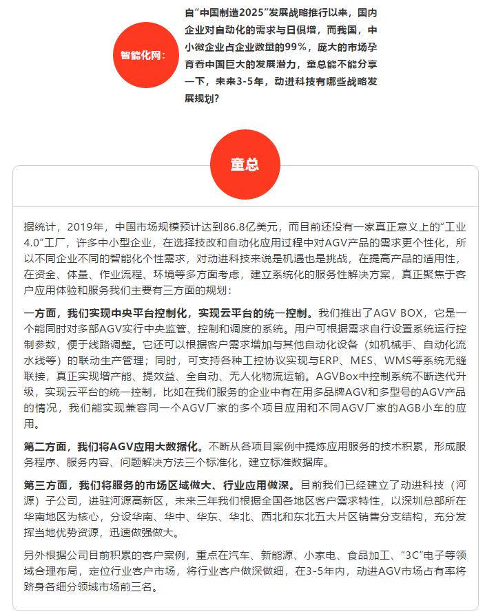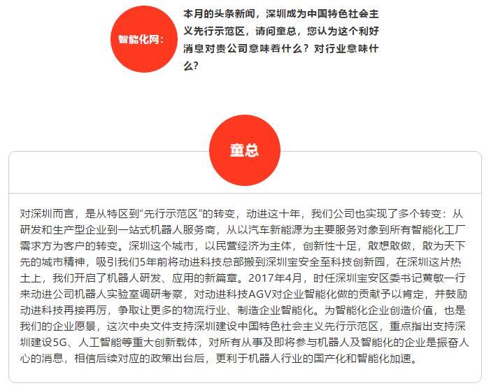 2019年8月23日,智能化网记者走进深圳动进智能科技有限公司,并有幸采访到动进科技董事长童格明先生。