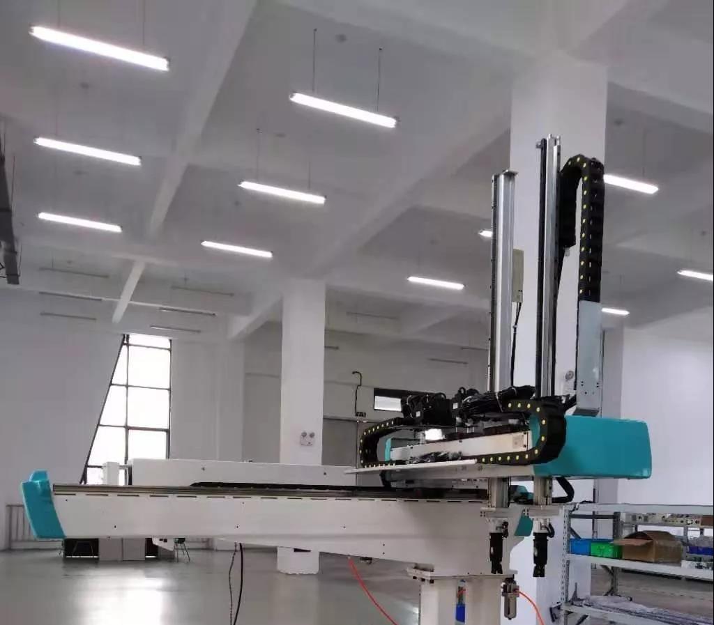 二、使用机械手节省人工:机械手取出产品放置在输送带或承接台上,只需一人同时看两台甚至更多台,可节省人工,做成自动流水线更能节省厂地,所以整厂规划更小更紧凑精致。