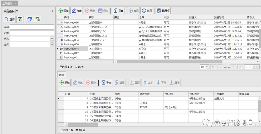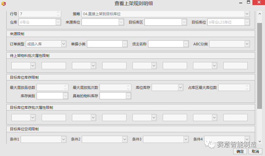 现在赛意SWMS V8.0产品全面支持系统策略配置化,有效实现“智能化系统,傻瓜式操作”这一目标。系统可以提供预先设置的策略管理库内的各项操作,根据不同SKU不同的场景在每个仓库的管理特性设置不同的管理策略: