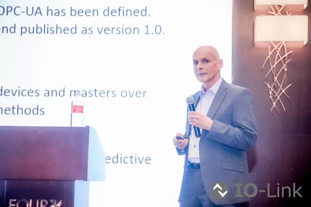 精彩聚焦会上,由来自德国倍加福集团的Hartmut Lindenthal 先生,发表了题为 “IO-Link新技术融合OPC UA, JSON, MQTT, REST,助力物联网互联互通” 的精彩主题演讲。Lindenthal先生从业多年,行业经验丰富,与在场观众一同回顾了IO-Link技术的发展历程,并探究IO-Link技术如何为数字化奠定基石,详细解释了各种面向物联网世界的OPC UA, JSON, MQTT, REST等通讯协议的定义及应用场景案例,各协议标准的组网优势等等。