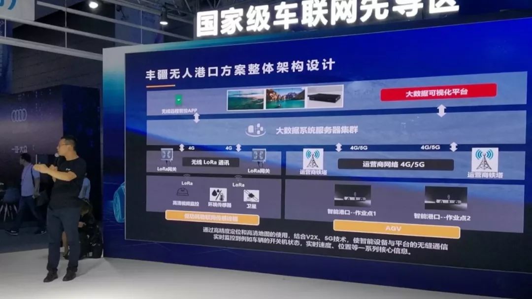 AVG小车已经成为许多智能生产车间的标配。东风汽车旗下丰疆智能首次在物博会上展示供港口使用的集装箱AGV,可以在不大规模改造港口基础设施的前提下实现港口物流的“无人运送”。丰疆智能董事长助理王锐表示,公司产品在国内一线海港及内河港均有前期合作。从农用无人车产品出发,丰疆智能在农用车辆、道路清洁、港口运输等领域均有产品应用。作为无锡C-V2X车辆网的参与单位之一,丰疆智能正在与无锡市政府在市容清洁、港口物流等领域展开相关合作。