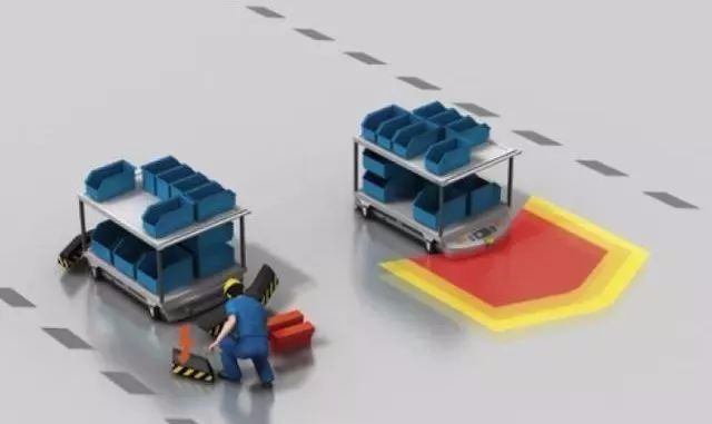 AGV将在障碍物被移出“安全”区域约三秒后继续自动运行。它自动重新武装。