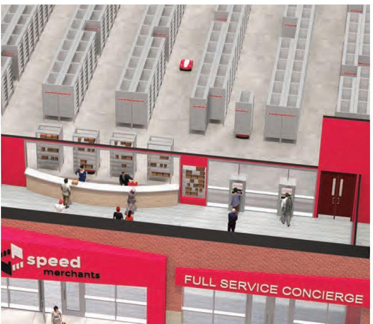 为了支持取件,DC需要一个类似的「包裹站」,处理隔夜的包裹,位于自动化仓库内用于存储。它将是一个自动装载的单个储物柜,消费者可以从柜的背面打开并拿走他们的商品。 移动取件点将在社区仓库内快速装满多个包裹,然后开到离消费者更近的地方(例如,购物中心停车场),消费者会在那里取包裹。