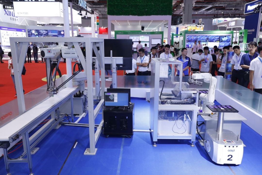 欧姆龙展出了无以伦比的高速与检查能力——工业用相机 3Z4S-CA;满足小规模装置网络需求的万能控制器——可编程控制器 CP2E;实现物料搬送全自动化——MOMA移动手臂解决方案。(见下图)