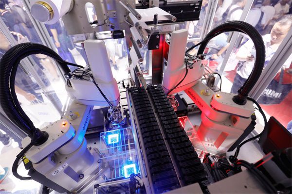 在本次展会中,欧姆龙展示了其高速叠片技术——面向中国市场EV行业二次电池的叠片机,业界领先;“Anyfeeder”上下料技术——面向汽车市场小型部件及电子元器件的上下料输送;CNC激光切割技术——面向机床行业的各种复杂工艺;机器人技术——面向各行业的无人化工厂改造升级;3D玻璃检测技术——面向电子行业的手机曲面屏的精准检查;飞拍技术——面向电子行业的电子部品对位组装;AI智能控制技术——面向各行业的预测维护,打造不停机设备。