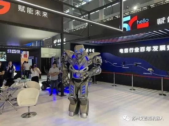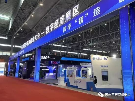 在主展馆的东侧,是总面积共6000平方米的数字经济展区参展的不仅有华为、中兴等全国知名企业,还包括了中国电信、移动、联通三大运营商各自的独立展馆。这里不光有对5G技术的详细介绍,还有一个依托5G技术开发的智能机器人,可以跟随着音乐“翩翩起舞”。