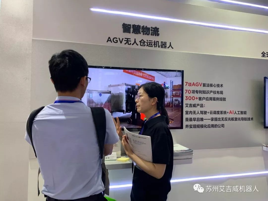 物联网、云计算、移动互联网等新一代信息技术的蓬勃发展,正推动着中国智慧物流的变革。智能化发展的加速,使得智慧物流从理念走向了实际应用。艾吉威现场展示多行业集群运用解决方案:轮胎企业旧工厂改造53台叉车AGV运作案例、第一家实行叉车AGV智能物流系统造纸工厂案例、还有新品运行视频等,吸引不少意向客户前来问询。