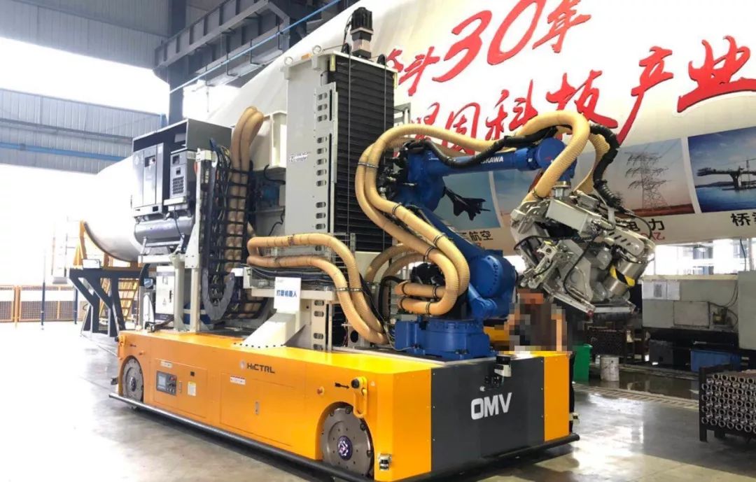 OMV移动机器人具有激光自动导航功能,运行路径可以自由规划,无需铺设轨道,叶片打磨长度由OMV定位来定,可以覆盖所有长度叶片,可进行长50-80米(可调节),高5米范围内的预弯叶片打磨工作,可以打磨各种型号的叶片,全程自动打磨,作业过程中无需人工操作。