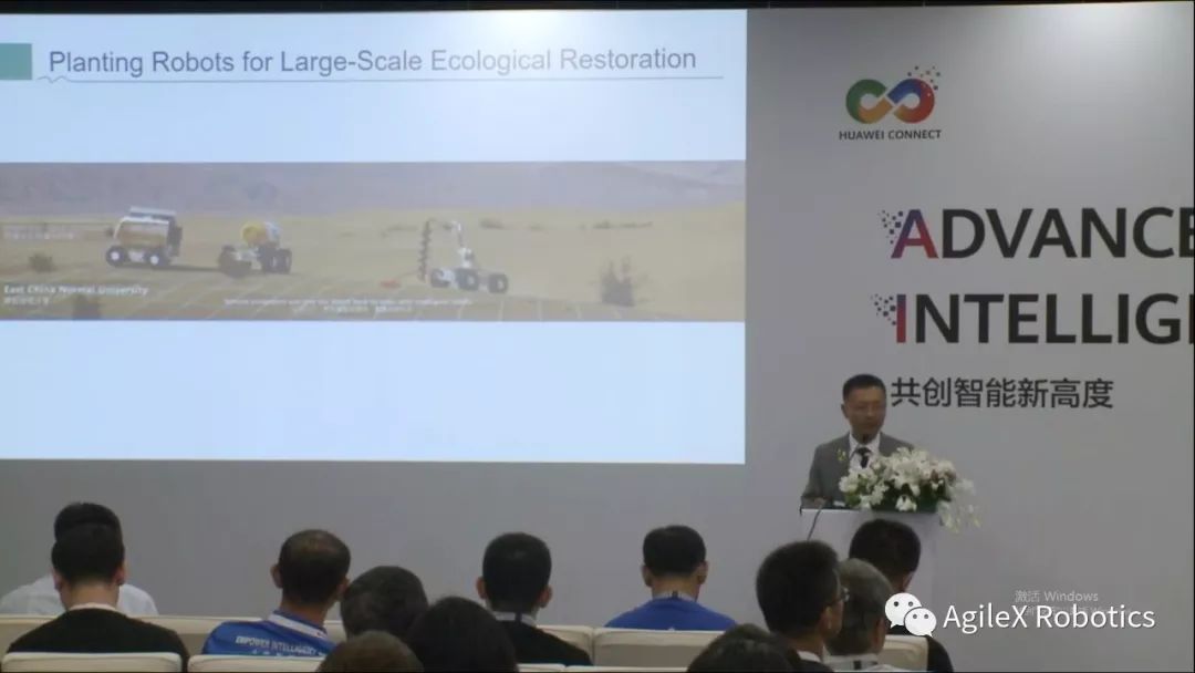 在2019华为连接大会上,张教授向全世界展示了在大规模荒漠生态恢复机器人集群的应用,预示了人工智能在解决生态问题、环境问题的发展。