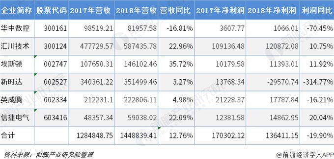图表8:2017-2018年伺服企业经营情况(单位:万元,%)