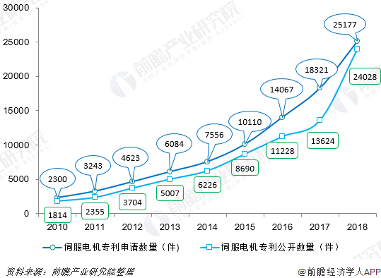 图表6:2010-2018年伺服电机市场专利申请及公开数量(单位:件)