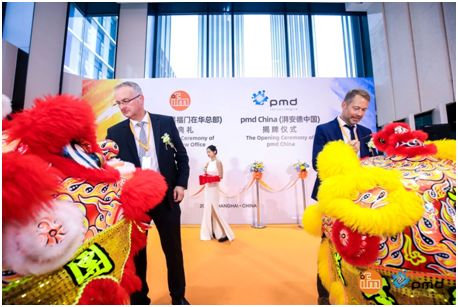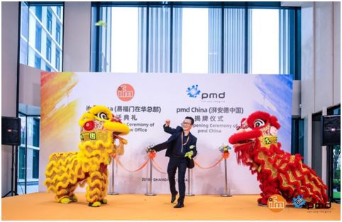 现场pmd全球执行董事兼中国总经理Mr. Jochen Penne和ifm中国总经理叶莘先生为pmd China(湃安德中国)成立揭牌。