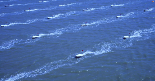 云洲无人船集群编队自主变换阵型,拼成HKUST GZ字样