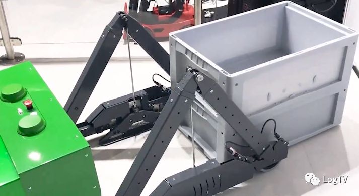 这款形似“蚂蚱”的AGV名为FLIP,由德国弗劳恩霍夫物流研究所设计。FLIP机器人不仅仅形似“蚂蚱”,搬运物体也和蚂蚱一样,需要依靠两条“腿”来移动货物。作为一款极其精简的AGV,它具有创新的负载处理能力。