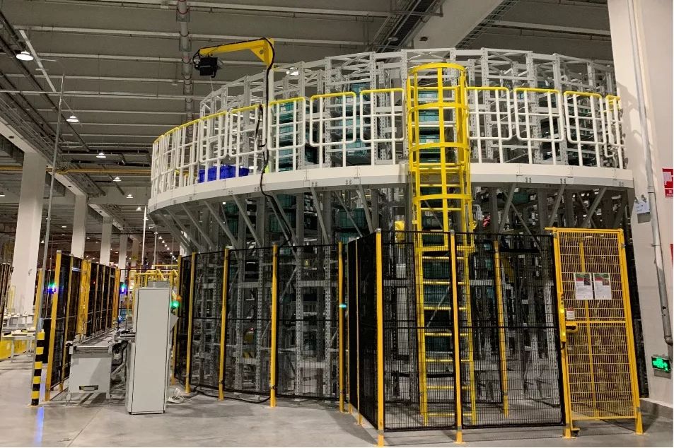 还未进入仓库内部,我们就看到了一个个像“自动电梯”的东西