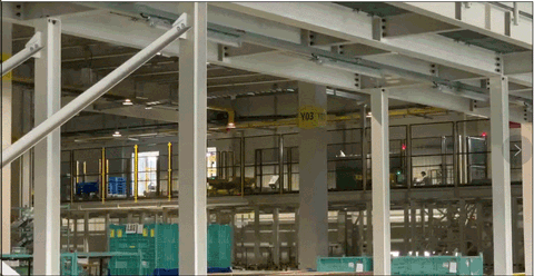 这些小车穿梭在“上层”,将货物运送到指定仓库位置