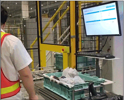 事实上,它也并非完全“无人”,在机器人自动分拣排序后,还需有工人根据机器指令,将不同的零部件放在同一个物料箱中,不过有趣的是,通过AI识别技术,机器人可以自动识别工人有没有放错,如果放错了,工人是无法进行下一步操作的▼