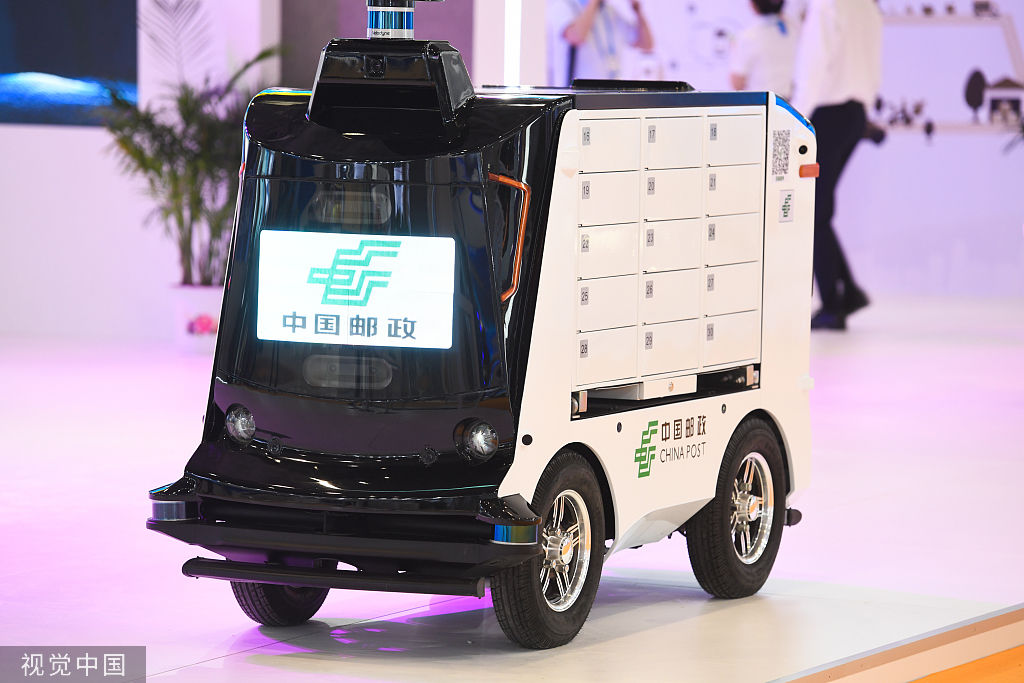 ▲2019年5月,重庆国际博览中心,在西洽会中国邮政展馆,中国邮政的无人快递车亮相