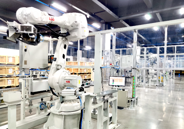 组装完成后,新生产出的机器人会自动前往标定联调区进行基本参数设置,随后进入自动联调区完成满载运行及调试,最后自动运行至成品区等待打包存储和装运发货。