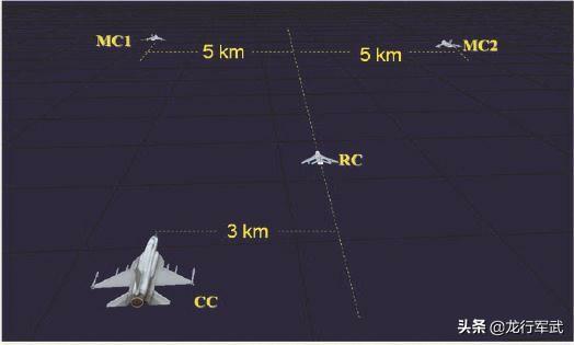 在实际操作中,雷达探测机没有武装能力,应该部署于有人战斗机前方,而两架携带中距弹的无人机应该部署在战斗的第一线,利用无人机隐身性好,被动接收有人战机的指挥信号的特点,保持无线静默不易被敌发现,从而悄悄接近对方。这样一来可以保护后置的雷达无人机和有人战斗机,二来还能给敌人以突然的打击,给敌人造成措手不及的攻击效果。但无人机攻击机、无人雷达机和有人战斗机之间的距离易过远或过近,太远会导致雷达无人机无法及时发现地方目标,也不利于有人战机迅速接敌抢先攻击;太近则没有充足的时间让飞行员充分的思考而做出合理的决策,同时太近的距离也将有人战机置于对方导弹射程之内,不利于保障有人战机的安全。