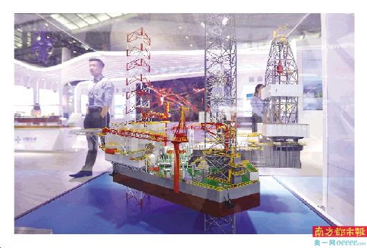 在中国首次海域天然气水合物试采中立下汗马功劳的“蓝鲸1号”是该展区的重要角色。由中集来福士完成全部详细设计、施工设计、建造和调试的“蓝鲸系列平台”,是目前世界上最先进的超深水双钻塔半潜式钻井平台,分别为“蓝鲸1号”、“蓝鲸2号”。与传统单钻塔平台相比,“蓝鲸系列平台”配置了高效的液压双钻塔和全球领先的西门子闭环动力系统,可提升30%作业效率,节省10%的燃料消耗。