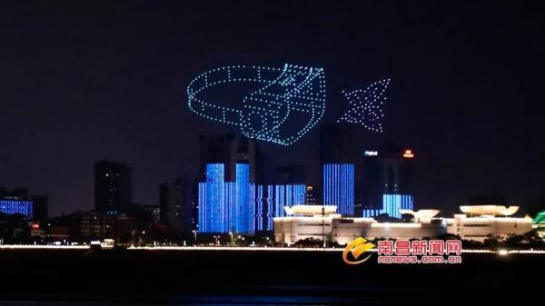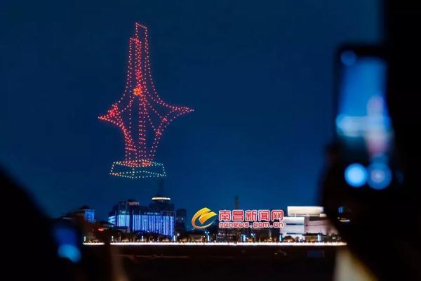表演当晚,无人机光影秀以城为景以夜空为幕,500架无人机不断变换灯光图形飞向夜空,如萤火虫般漫天飞舞,逐渐组成“八一大桥”“崛起雕塑”“滕王阁”等南昌特有元素画面。