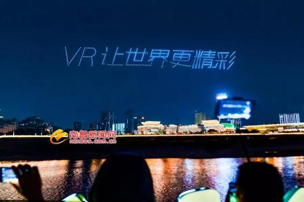 紧接着,“我爱江西”“VR+5G开启感知新时代”“VR让世界更精彩”等元素在无人机的不断变换中逐渐呈现,为城市增添一道亮丽的夜景,充分彰显新时代南昌的城市风采。
