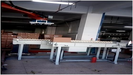 靠边辊筒机输送至机器人码垛处,扫码不合格排出,返修后重新扫码。