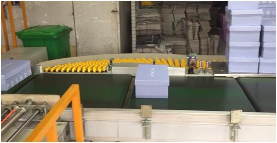 该鞋业公司为鞋业行业第一家安装自动化立体库项目行业,其制作鞋品规格繁多,包装种类多样,对井松来讲是一种极大挑战,我方技术人员经过多方探讨及研究根据现场条件研制出鞋盒的自动分类储存系统,通过自动扫码分类经提升机直接送到后道储存流利条货架储存分类,达到了鞋盒的自动化分类。由人工装箱经过自动封箱及自动角边机实现包装的自动封存功能。封箱完成后送入机械手码垛区,经机械手自动抓取按照不同箱体进行分类码垛,实现箱体的自动分类码垛。码垛完成后经输送系统直接送入立库储存。实现了自鞋盒自动分类--自动封箱--箱体码垛---入库存储一系列自动化智能化存储物流系统。实现了每层楼因自动化设备代替人工减少5-6个人,仓库发货仅需2人负责,且大大减少了仓库的存储空间。