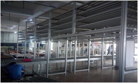 多工位升降机将鞋盒送入缓存线上,缓存线进行缓存(每条线15个滑道,每个滑道平均存放21个鞋盒)。