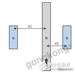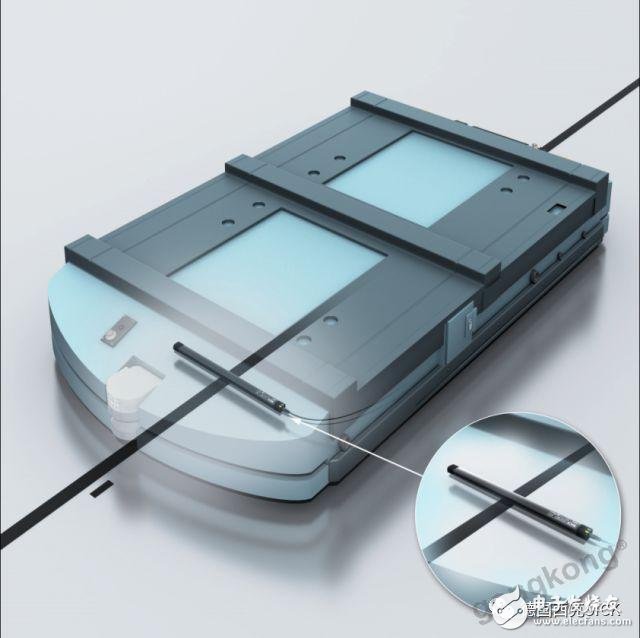 通过读取预先布设的磁条,通过磁感应信号,检测磁条与传感器中心点相对距离,是小车沿既定方向行驶
