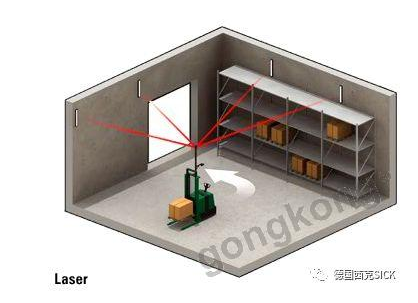 通过反光板:通过测量预先布设的地标(反光板)来确定当前位置和方向
