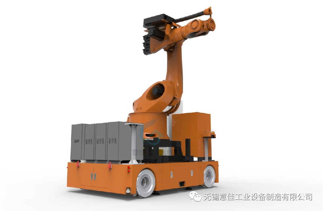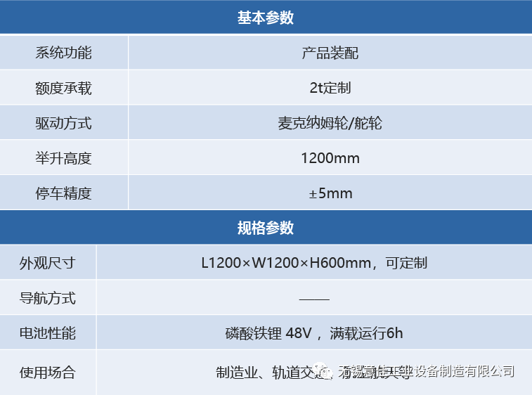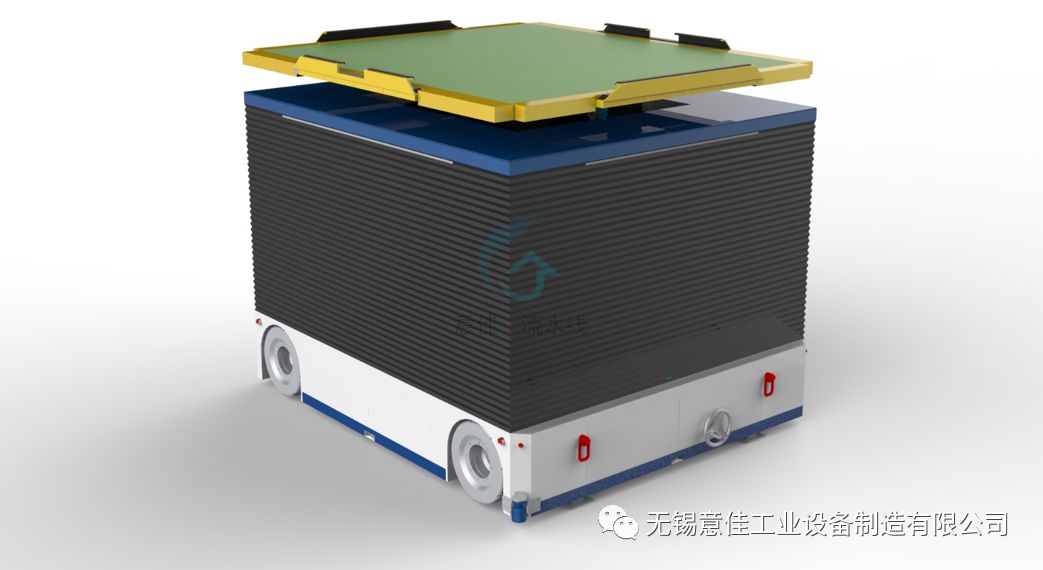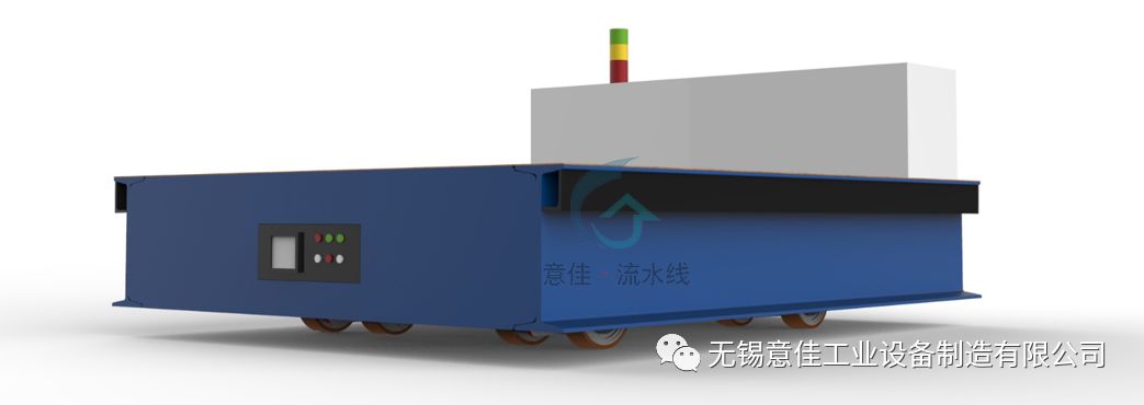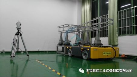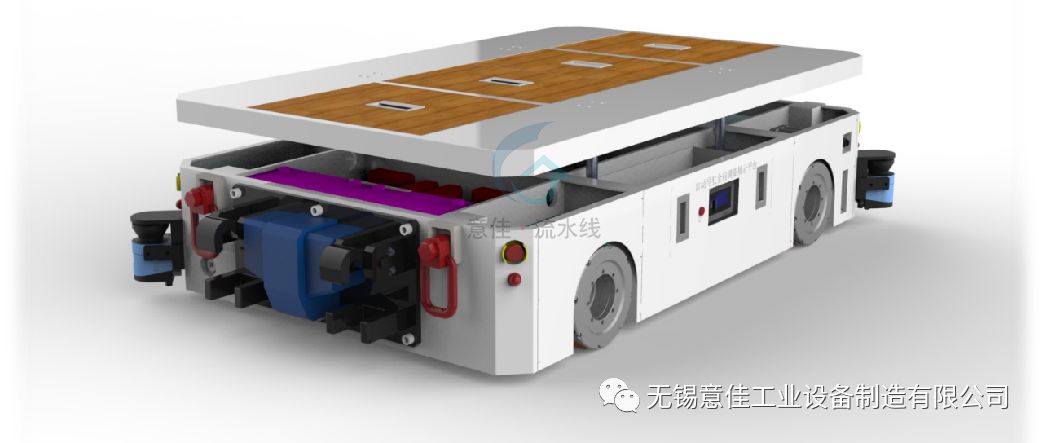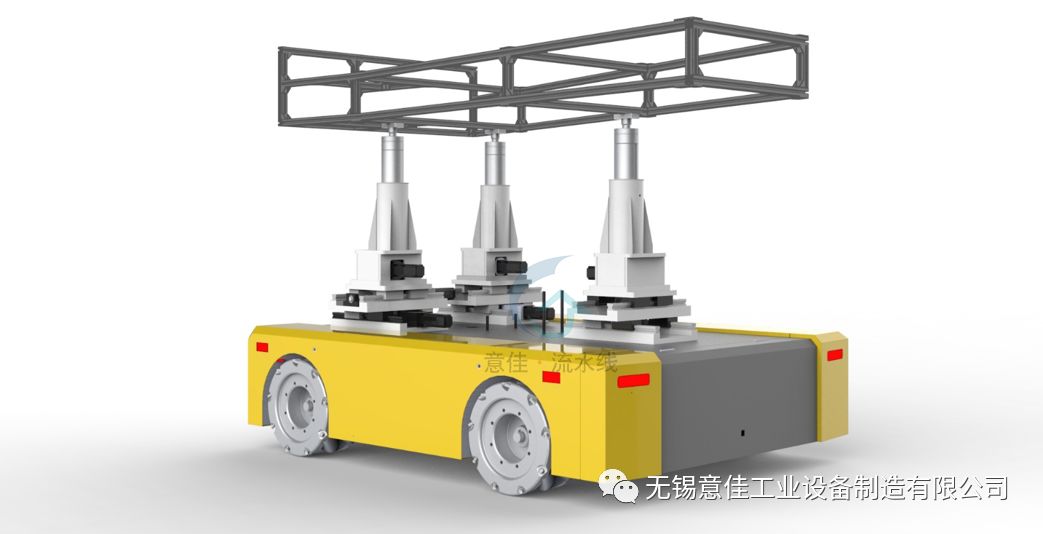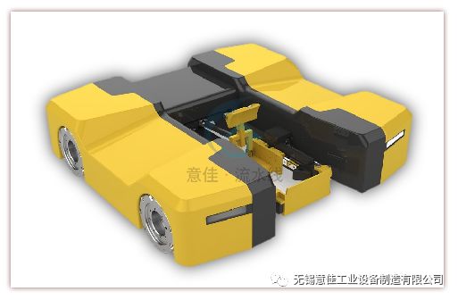 举升装配型AGV主要由AGV车体、剪叉式升降机构和产品托盘组成,用于完成诸如列车车底转向架的安装,替代人工作业。
