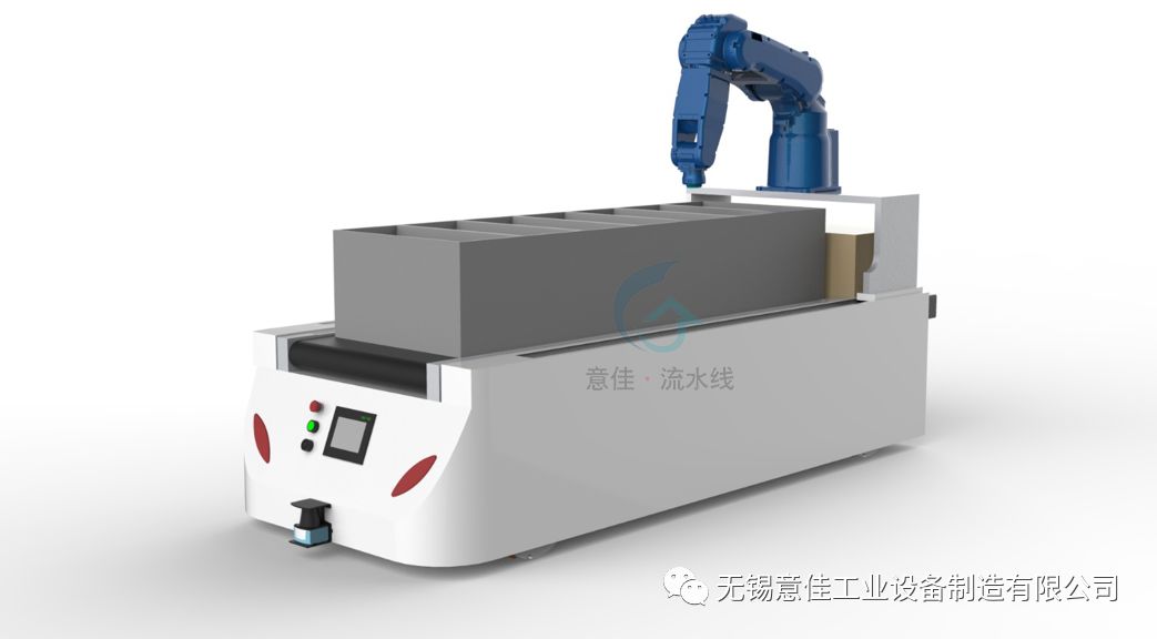 AGV搭载机械手的复合型机器人,主要用于将物流按要求输送至指定工位,通过机械手放置到特定位置,实现高精度定位、自动化加工、智能化管理。