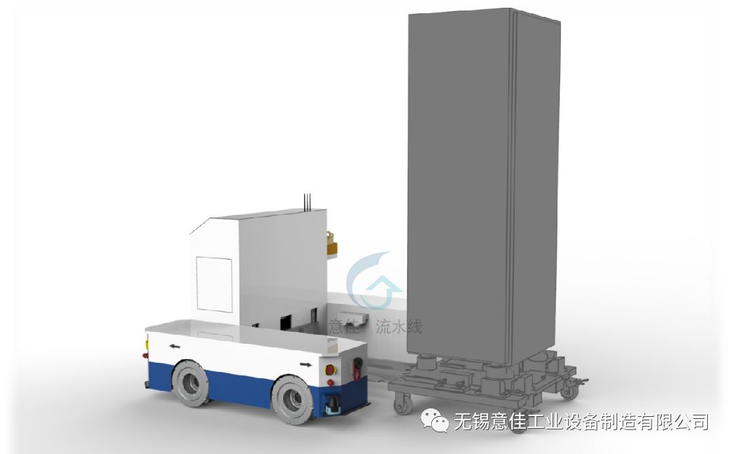 采用尾部牵引勾或者牵引棒,可潜伏在料车底部自动和料车进行挂扣和脱扣,也可以直接牵引多台料车,实现高效搬运。