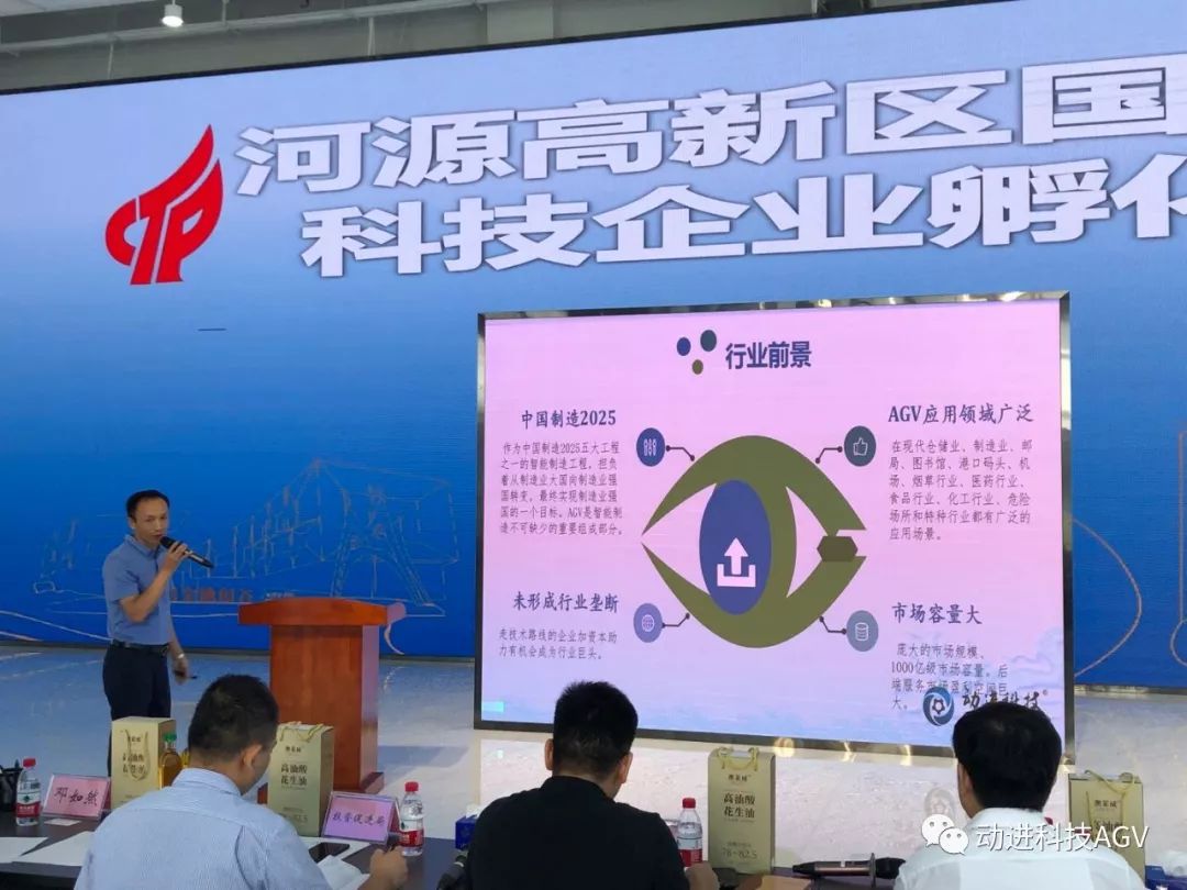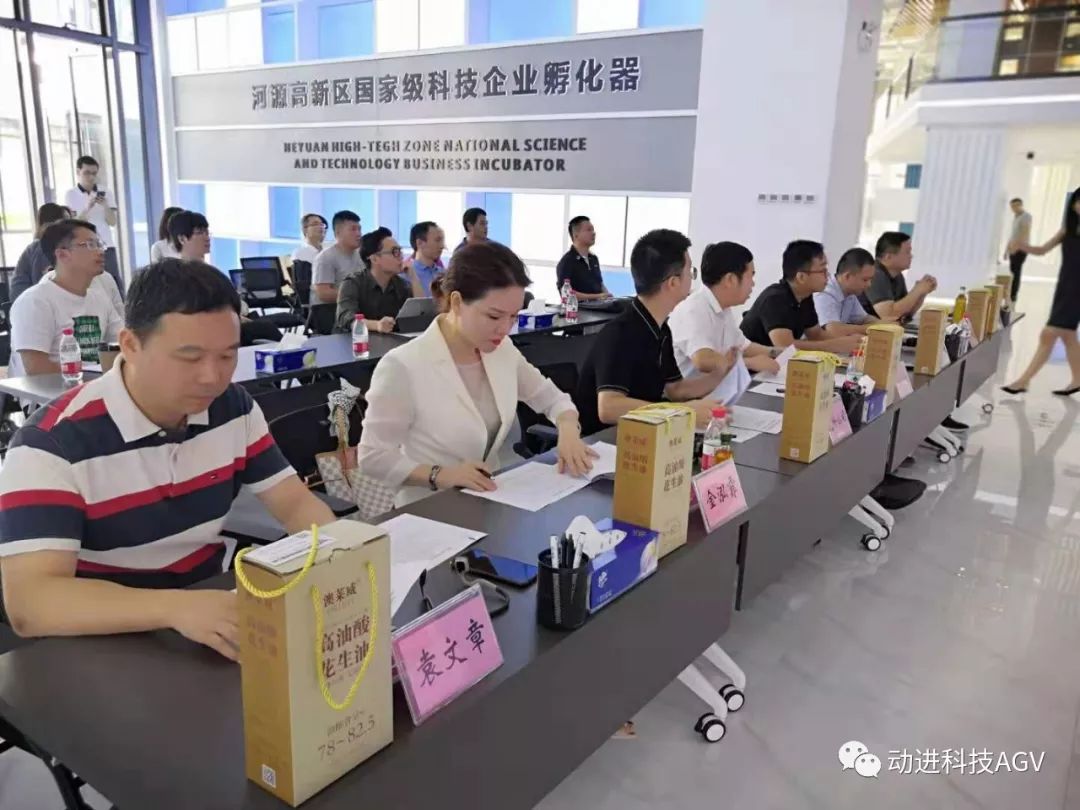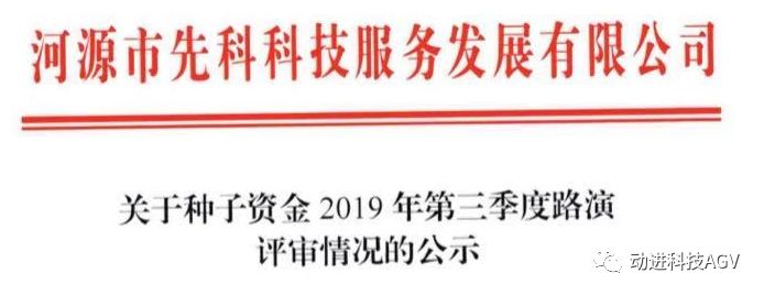 9月25号,河源高新区科技企业孵化器举行了先科公司种子资金2019年第三季度路演互动,深圳动进智能科技总经理凌世道出席,并展示了动进智能科技集团在河源国家级高新区孵化器的工业机器人项目。其中动进AGV的中央控制系统成为路演活动的亮点,经过路演、评委提问及评审和公示,动进智能评审为B(只有B级和C级),根据评审,动进智能将获至少30万的种子资金。