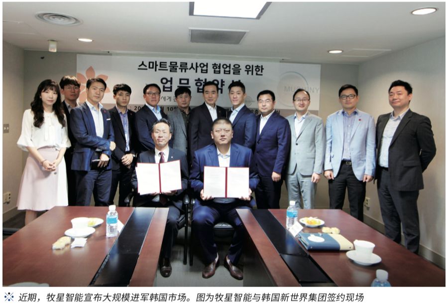 7月,牧星智能也宣布大规模进军韩国市场,与韩国新世界集团在韩国首尔签署韩国连锁超市巨头易买得旗下Everyday智能物流中心项目采购协议,易买得将在其物流中心部署数百台牧星智能机器人。