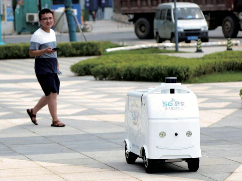 如今的电商、快递和外卖巨头正在做的就是这件事情。京东自主研发的快递机器人,能够通过雷达和传感器实现360度环境监测,能够自动规避道路障碍与车辆行人,准确识别红绿灯信号,自主停靠配送点。苏宁研发的卧龙一号无人配送车有六个轮子,整车规格8寸长,重量轻便,续航里程8小时以上。通过多线激光雷达+GPS+惯导等多传感器融合定位。AI芯片大脑会自主分析并规划出精确路线。能避障碍物,抵挡恶劣天气。能自乘电梯、叫门,户外室内无缝切换。卧龙一号2018年6月18日进入常态化运营后,主要承担苏宁小店周边社区3公里范围内,线上订单1小时生活圈的即时配送服务。最近,苏宁还最新发布了5G配送小车。随着5G技术的成熟,将支持末端配送机器人(无人配送小车)具有更高反应能力和灵敏度,无疑大体提升了末端配送机器人的实际运行能力。