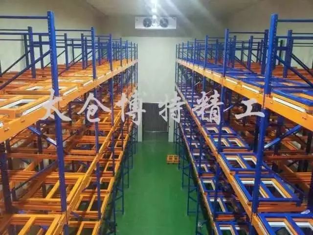 高空间利用率的后推式货架适合品种少、批量大之物品,先进后出之作业方式在恒温或冷藏、冷冻行业、粮油行业、机械行业、电子行业、食品行业、农产品行业等都有较广泛应用。