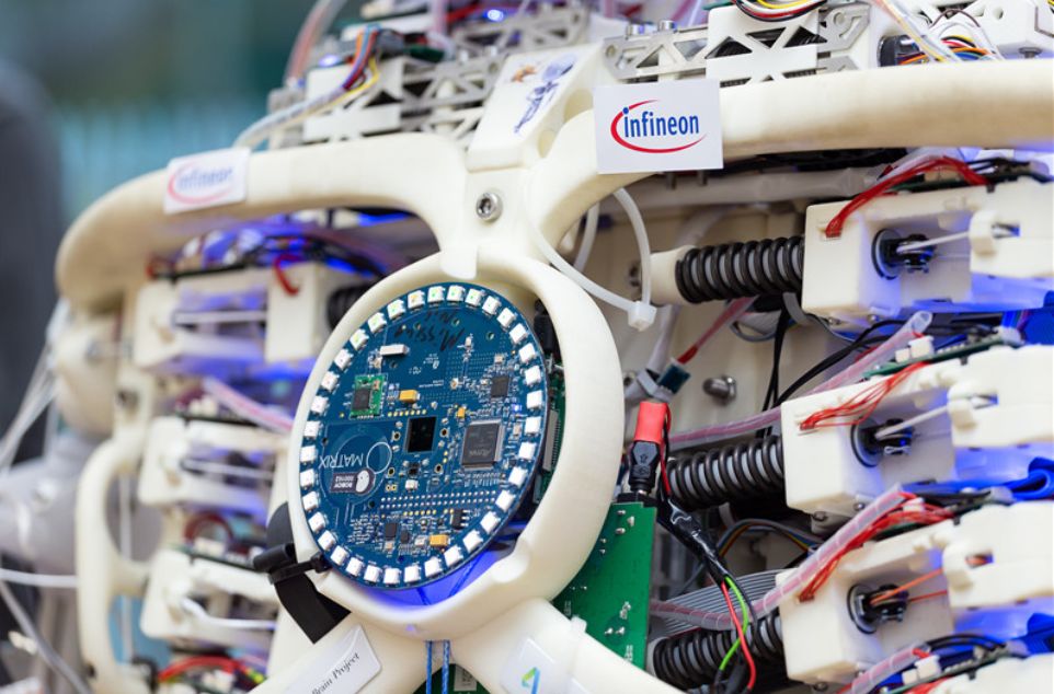 不仅仅拥有强健体魄,Roboy还能够有效与人沟通,并具备多项技能,这一切都归功于它所拥有的“智慧大脑”和“中枢神经”——英飞凌半导体器件,研发人员为Roboy装载了一套发达的神经网络系统,从而赋予其听觉、视觉和感知功能。