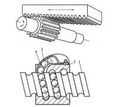 在丝杠和螺母的螺旋槽内嵌入滚珠,并通过螺母中的导向槽使滚珠能连续循环。